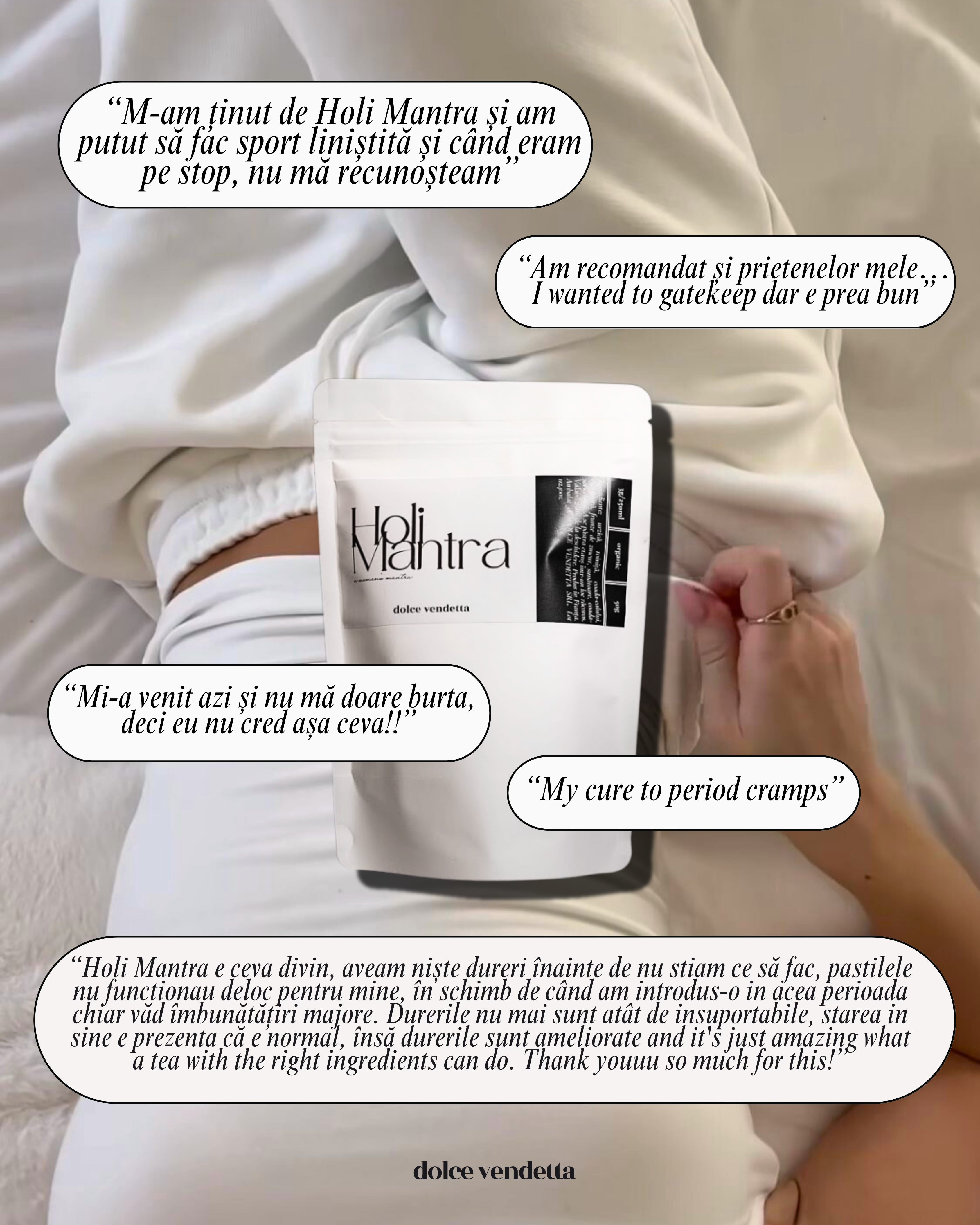 Dolce Vendetta este brand fondat de Amalia, nutriționist-dietetician licențiat cu finalizarea studiilor în toxicologie, dedicat sănătății feminine printr-o abordare științifică. Misiunea brandului este de a le oferi femeilor tinere instrumentele necesare pentru a-și înțelege biologia în profunzime.